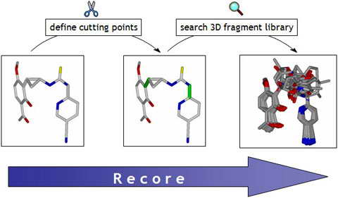 如其名字所寓意的,ReCore定位並去除分子的核心,並且在3D-片段庫中尋找合適的替